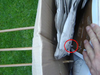 Even opletten: zowel bij de zak als bij een doos kan de pijl door het doel heenvliegen als je het helemaal aan de zijkant raakt waar weinig papier zit.