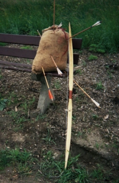 Op de foto de jutezak samen met de boog die Ynse in de workshop maakte. Is het geen beauty?