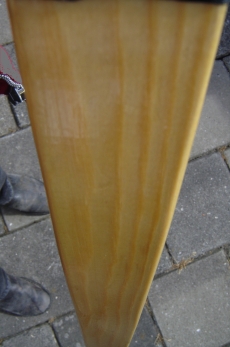 Grenen staat niet te boek als bogenhout. Maar door de boog goed rond te tilleren en door smalle nokken te maken, schiet deze boog verrassend snel. En na een paar maand gebruik is hij nog behoorlijk recht.
