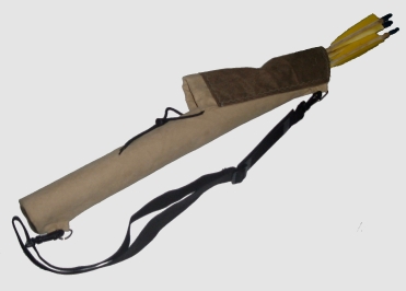 Het touw is lang zodat je kunt kiezen voor dragen aan de riem of op de rug hangen. De kwast die je kunt zien hangen, kan worden gebruikt voor pijlen te ontdoen van modder en zand. Maar ook kun je de kwast tussen de pijlen in de koker drukken, waardoor de pijlen er niet uit kunnen vallen als de koker te veel helt. "