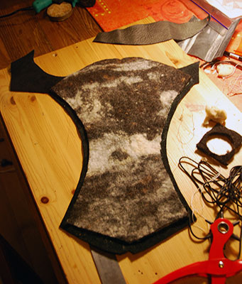 Uiteindelijk heeft het me 4 volle avonden (en een deel van de bijbehorende nachten), een blaar op mijn rechtermiddelvinger (van de naald) en een vriendelijke schoenmaker (voor de lange naad) gekost. Maar het resultaat is er dan ook naar. Ik ben trots en mijn mede-gildeleden stonden met de bek open."